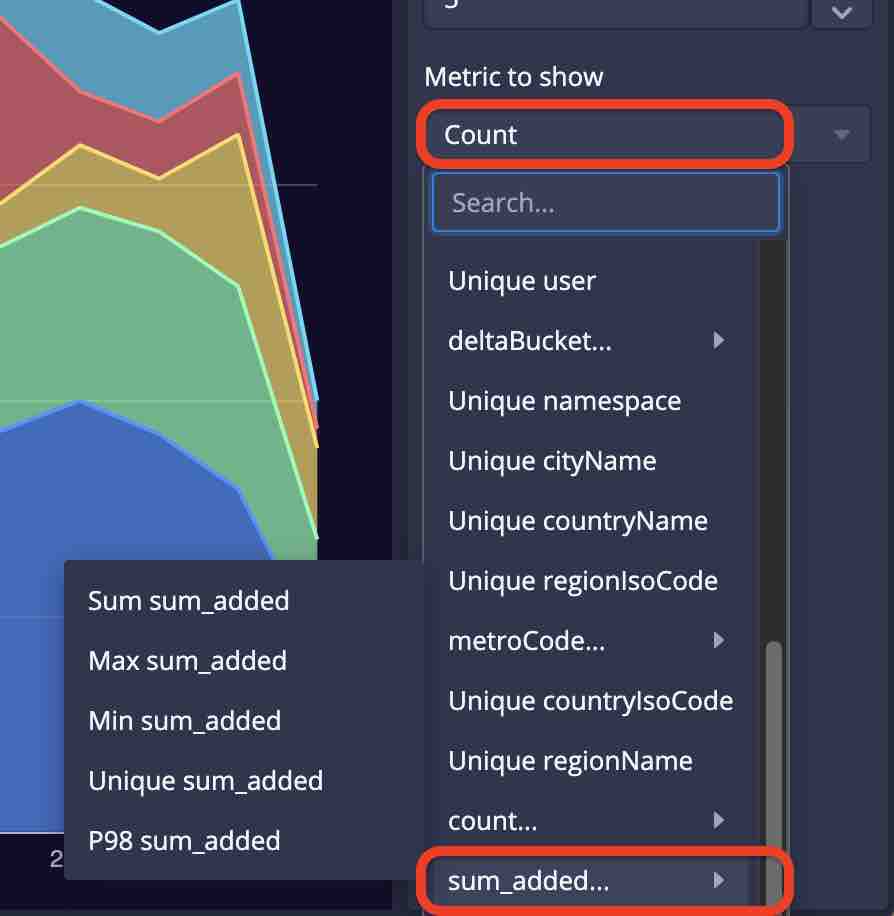 This mechanism of selecting metrics is the same for all other visualizations, too.